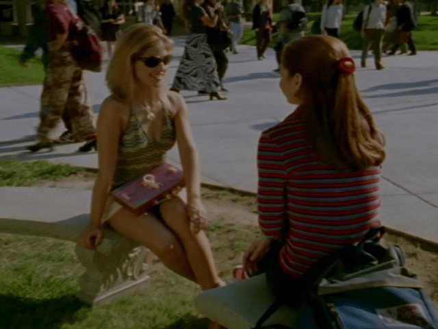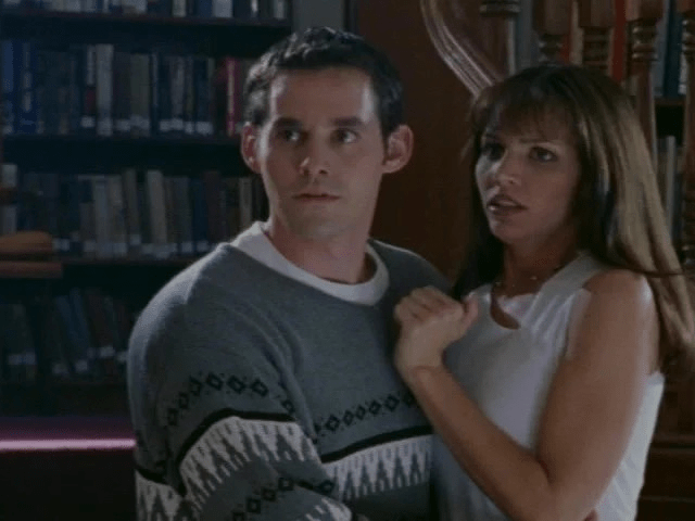 19:57 : Just a thought as the kids leave class and arrive in the library… Willow’s helping Jenny for extra credit and Xander and Cordelia are behind. Buffy’s not in Saturday school. All that’s good and all, but are you telling us that the Slayer, who has trouble attending any class – and the fact we’ve never seen her in Jenny’s class at all – isn’t falling behind? And Buffy’s skills using a computer (as seen in I Robot, You Jane) are… rudimentary to say the least…
