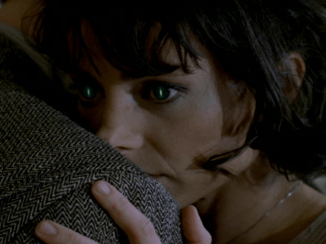 24:03 : Jenny’s eyes flash green with CGI. She’s been possessed by the demon, but the transformation is nowhere near complete…