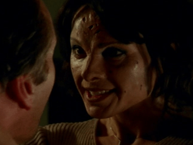 29:47 : Jenny pulls back from the kiss with Giles and the first stage of her demon makeup has been added. For now it’s relatively light, but it’ll get worse…