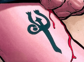 10:10 : The Mark of Eyghon is tattooed onto an individual and his group. It acts like a homing device for the demon to be summoned to, to walk on the earthly plane. Those who possess the Mark can not escape unless the Mark is removed. There is also limited empathic skills between Eyghon and others who wear the Mark. Giles and Ethan both have one in this episode.