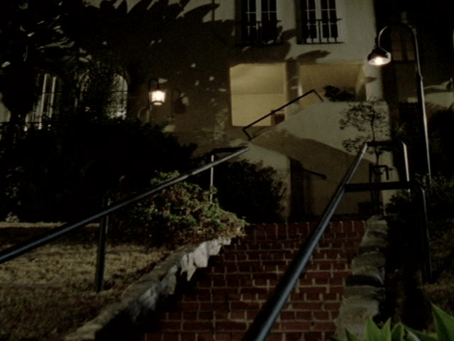 12:30 : The exterior location of Giles’ apartment, in reality found at El Pueblo Apartments, at 4616 Greenwood Place in Los Angeles.