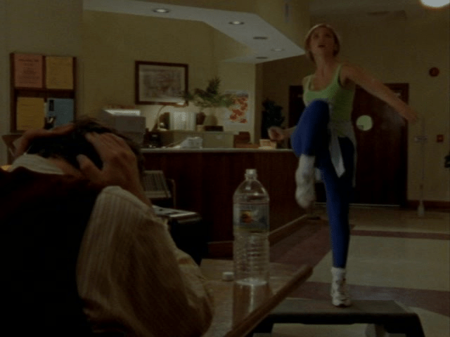 1:33 : Buffy’s music in this scene is unidentified, but worth every moment simply for Giles’ reaction: “Wonderful. You work on your muscle tone while my brain dribbles out of my ears.”