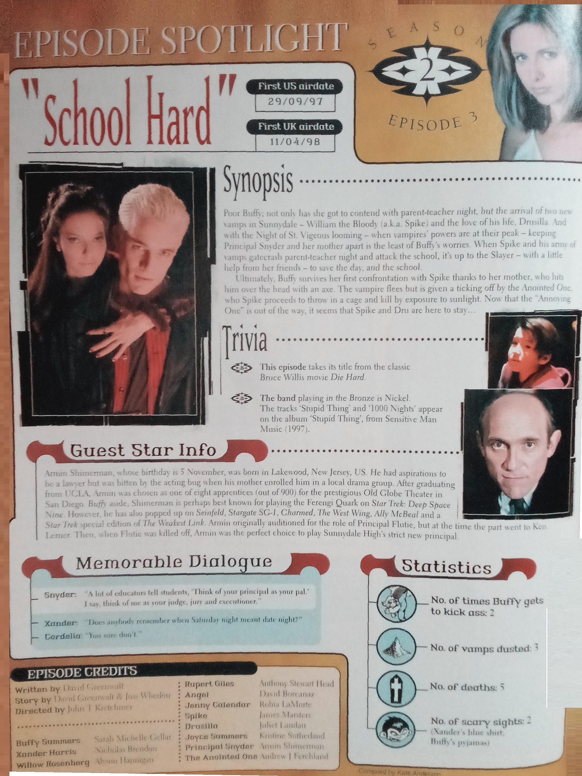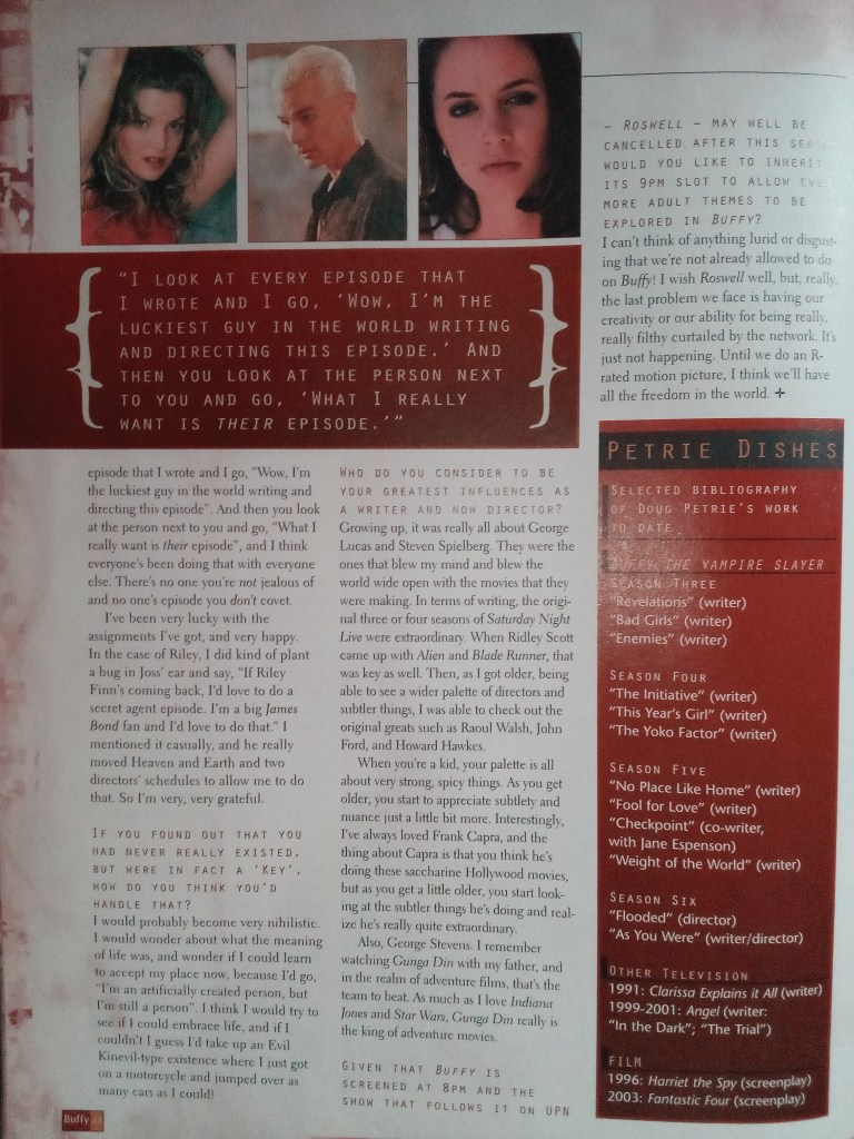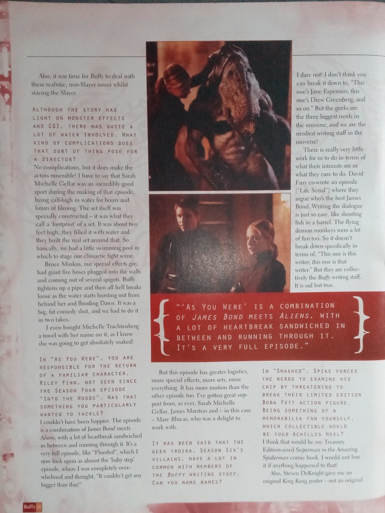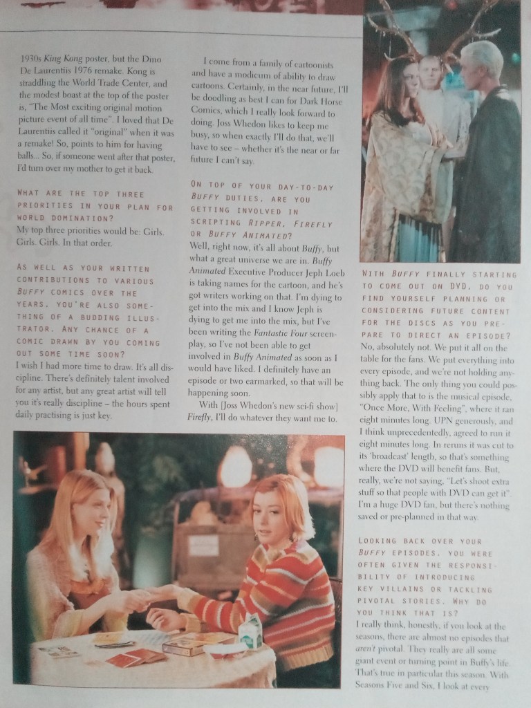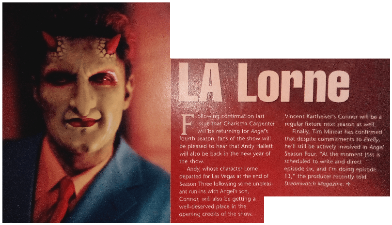 Also this month, getting something else wrong, was the announcement that Andy Hallett had been promoted to a regular on Angel and would be placed on the opening titles. However, this didn’t occur at the start of the season as planned… Lorne fans would have to wait a bit longer for that one…