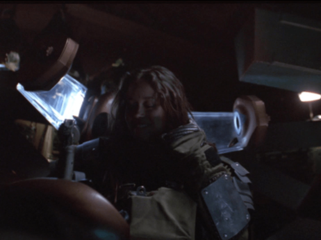 27:58 : Jubal compliments Serenity, calling the Firefly-class of ship a good design. Looking at this episode and you see what he means. The entire episode is set completely on the ship or in the close confines of Jubal’s small one-man craft. The complete set is showcased brilliantly by the director, who clearly – and quite rightly – is proud of it. It is the only episode to take place onboard Serenity for the majority of the episode: Out of Gas had scenes outside.