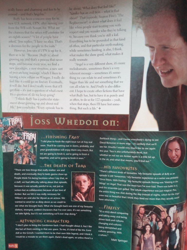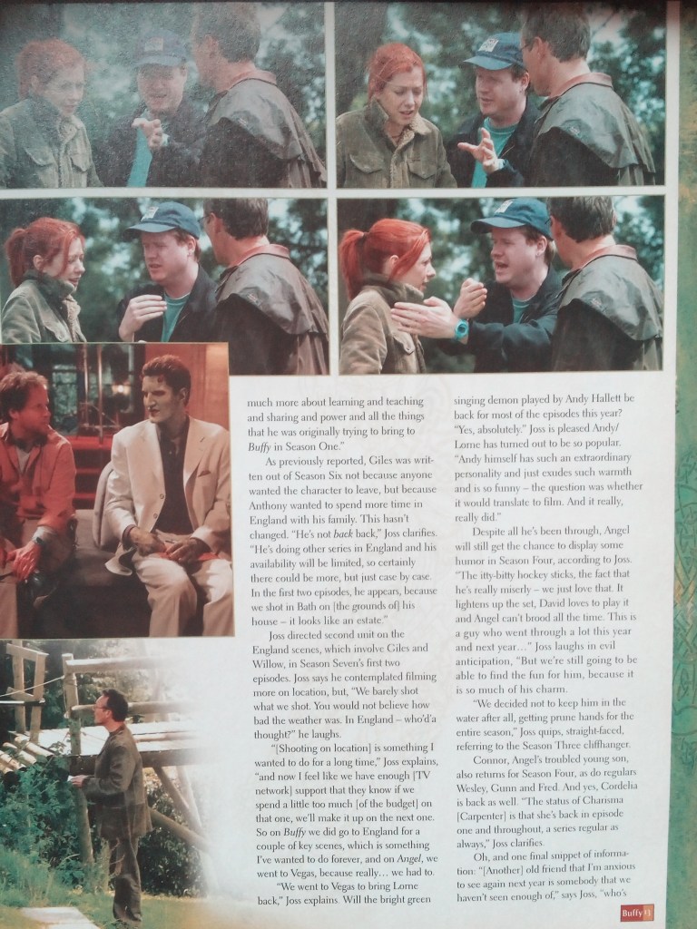 Over on the Buffy side of things, this month there was something we were still talking about. With a large picture of Amber Benson as Tara, alongside Kristine Sutherland as Joyce Summers, the article first teased Conversations With Dead People, Season Seven’s most experimental episode.