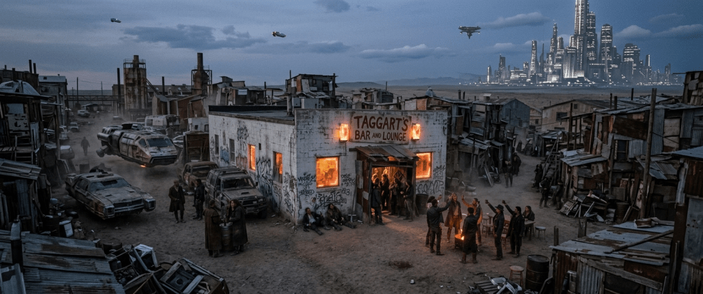 His reverie ends when he’s dragged from the cell and paraded before the Browncoat Independents again — the same voices chanting his name like it’s a curse. Mal recognises faces in the crowd, folk he fought beside, folk he saved from certain death. And at their head stands Toby Finn, older now, worn down, his face twisted with a vengeance Mal can’t quite reconcile with the boy he knew.