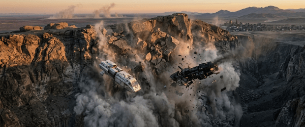 Back aboard Serenity, the crew barely has time to breathe before the HTX‑20 starts to destabilise. Zoë tries to warn the renegades, but they’re too far gone in their thirst for vengeance to listen. She’s the last one up the ramp as Serenity blasts off, climbing hard for orbit. From above, she watches the moon’s surface erupt — plumes of dust swallowing the mountainside, wiping out the renegades, Covington, and every last trace of their hideout.