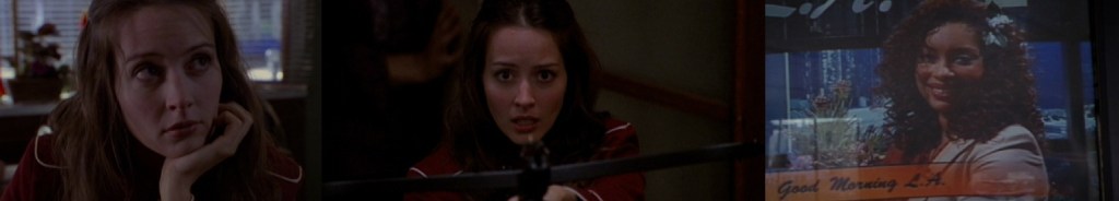 Fred goes to talk to a still unconscious Cordelia, and tells her about the seriousness of their situation since no one else seems aware that there might be a problem or how to deal with it. Angel catches Fred and talks to her about the great new woman in their lives. Fred tries to get him to think about the strangeness of their situation and this seemingly wonderful woman, but Angel’s faith is unwavering. Later, Fred goes to the local hospital to check up on the man that tried to attack the godly woman. The receptionist eventually tells Fred where she can find the man, John Stoler: in the Psychiatric ward. Fred sneaks into John Stoler’s room, where he’s strapped to a bed, and confronts him about what he saw. She convinces him that she saw the same thing and then he reveals that the side of his face that Jasmine touched has become deformed and decayed. He tells her she’s been called like him to stop this woman and her evil, but Fred doesn’t like that idea very much and runs off.