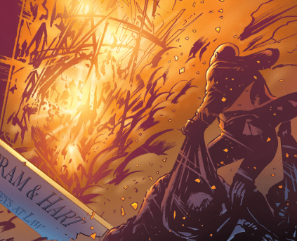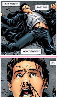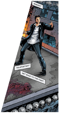 Suddenly, he teleports. No. The whole city has teleported – straight into Hell itself. From atop a building Angel struggles to take it all in, but knows he has to get back in the fight. He leaps heroically to the street below. As he prepares to land, he feels his heart racing.